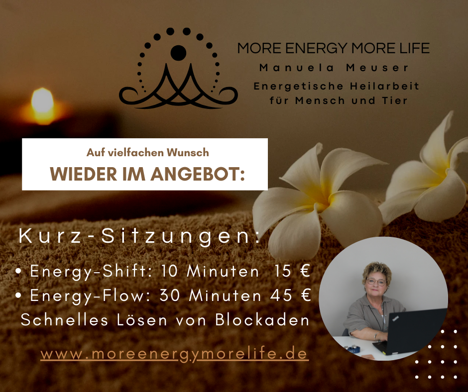 Ich habe MORE ENERGY MORE LIFE gegründet, um andere auf ihrem Weg zu begleiten, so wie ich selbst begleitet werden durfte.
